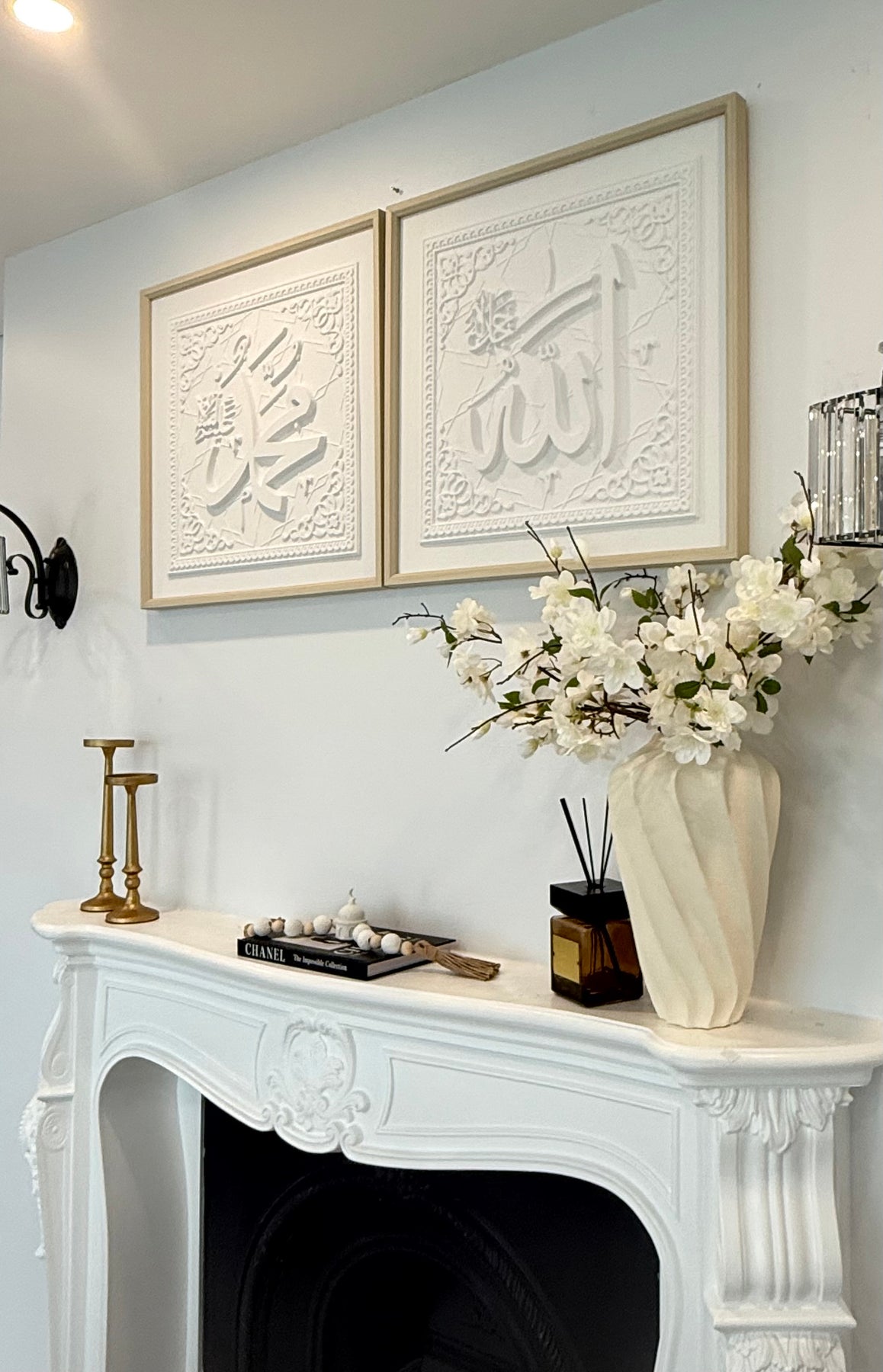Stone effect Allah & Mohammed set of 2 wall light frames