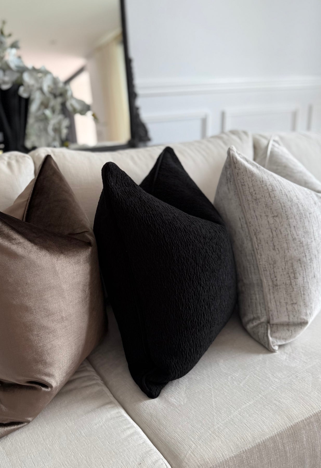 Ava Noir woven cushion