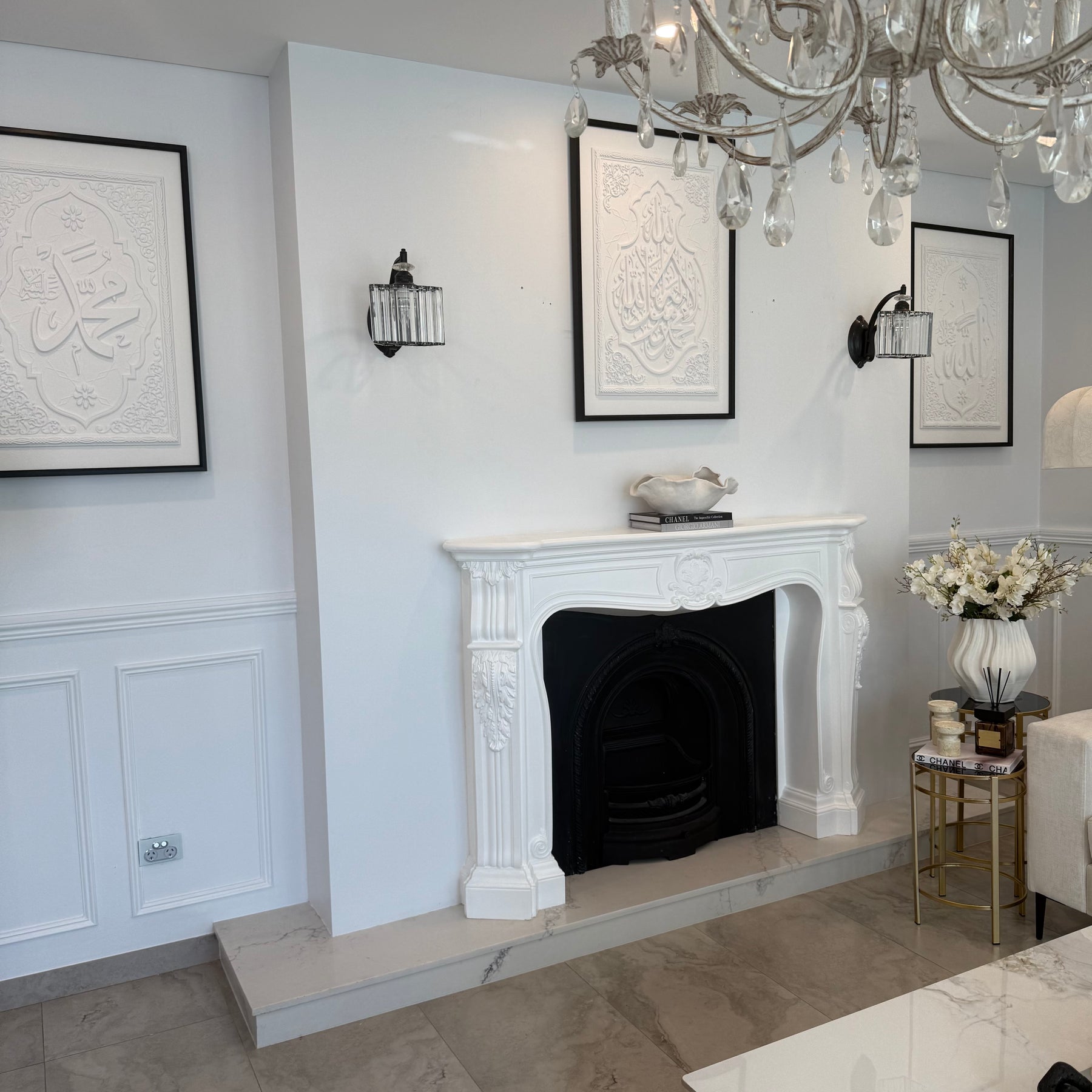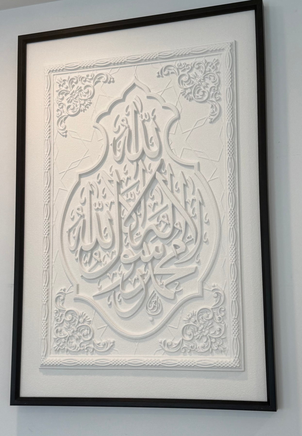 Stone effect black frame La ilaha illallah Muhammad ur Rasool Allah (SAW) I bear witness that there is none worthy of worship except Allah.