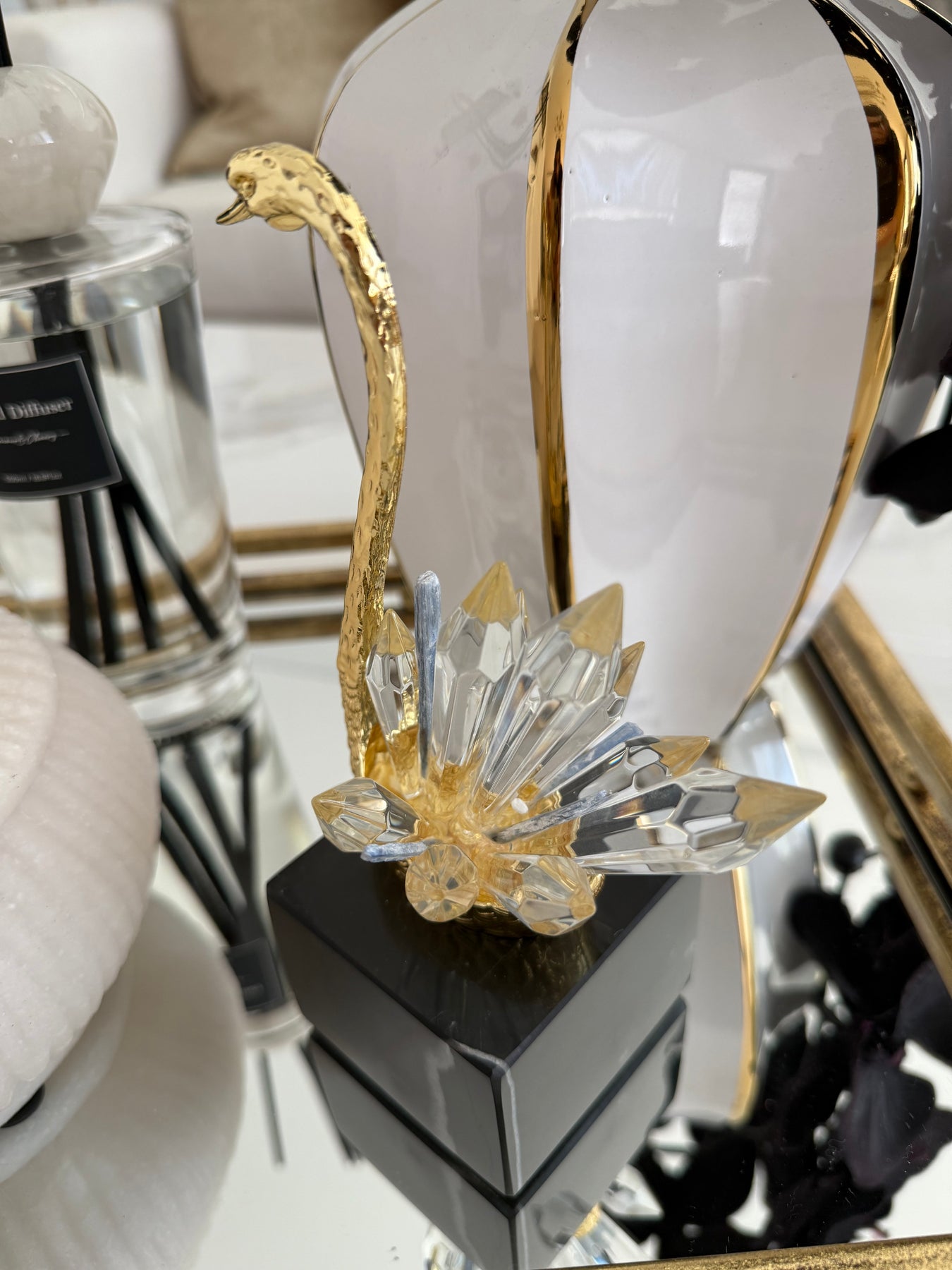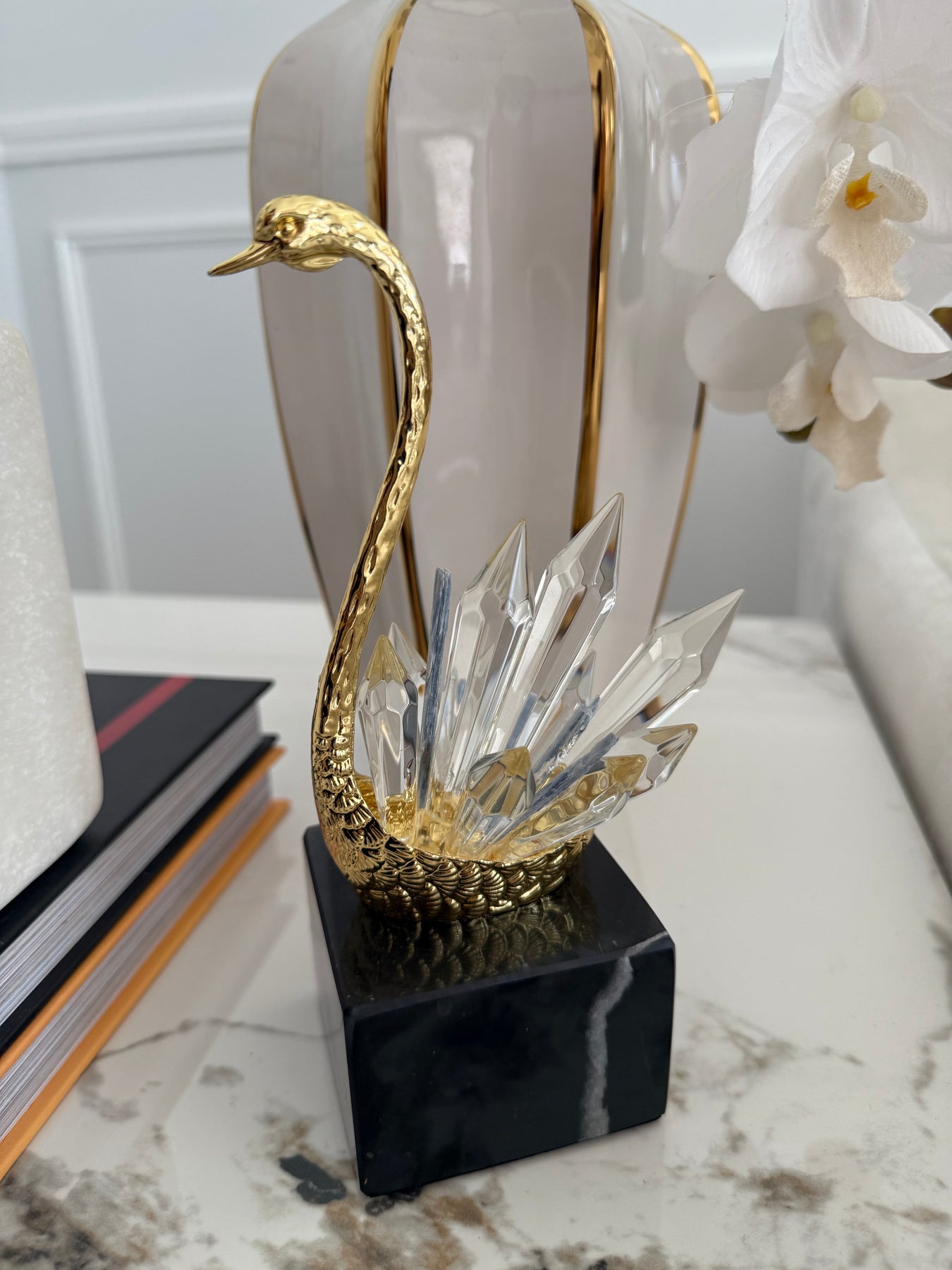 Crystal swan figurine marble stand