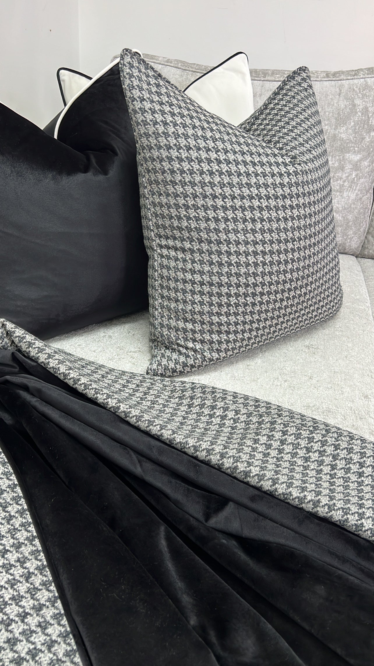 No tassels. Thick throw has black Velvet on other side can be used double sided .