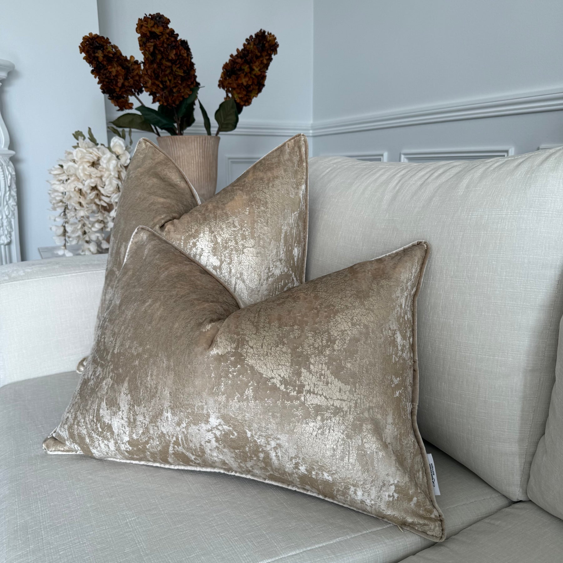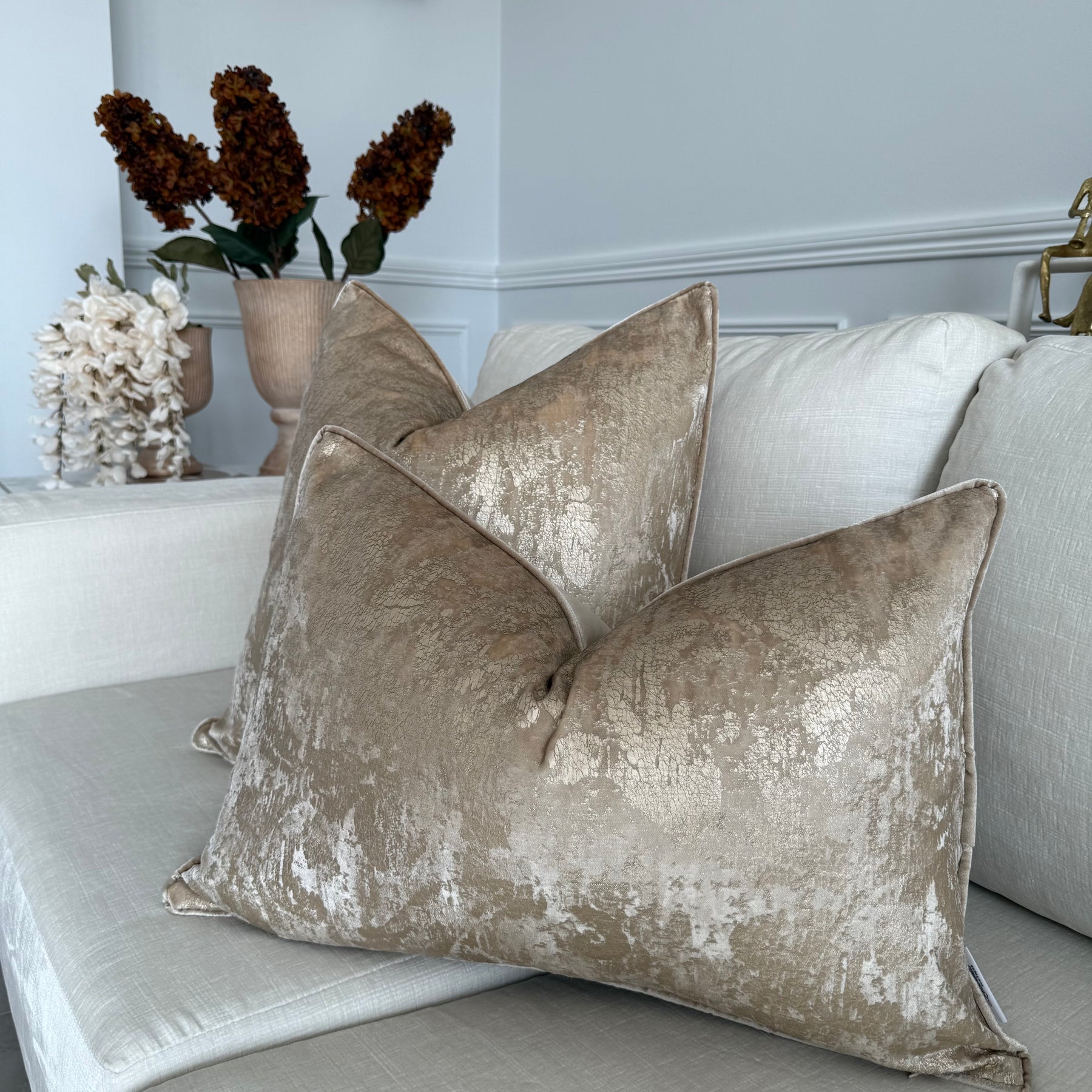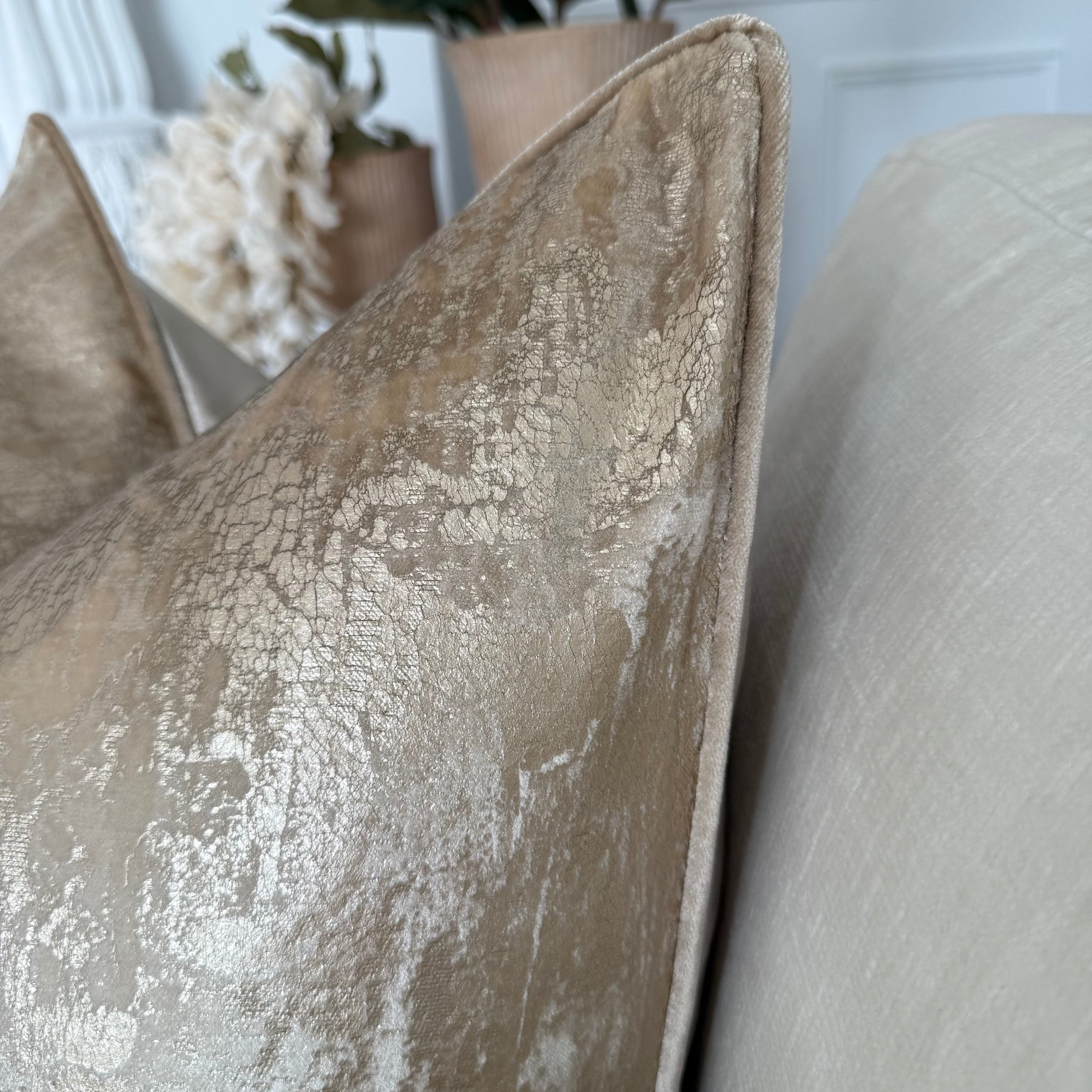 Luxury champagne & gold velvet cushion