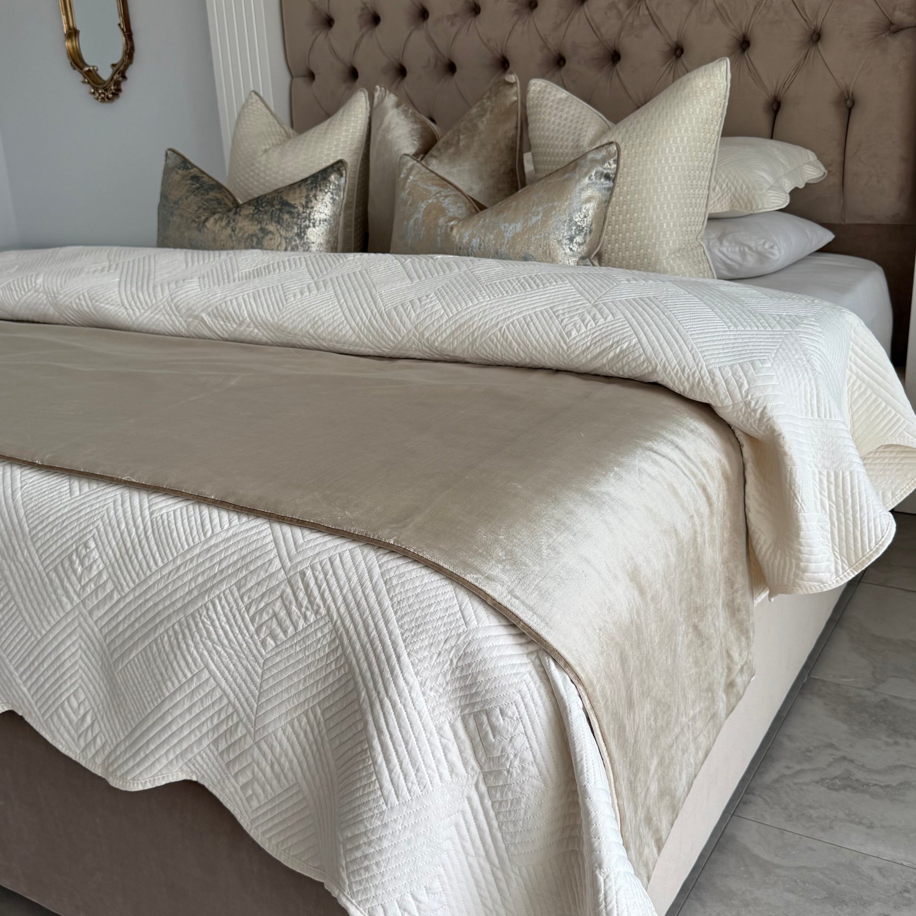 De luxe latte velvet bed runner / throw 260 x 60 cm